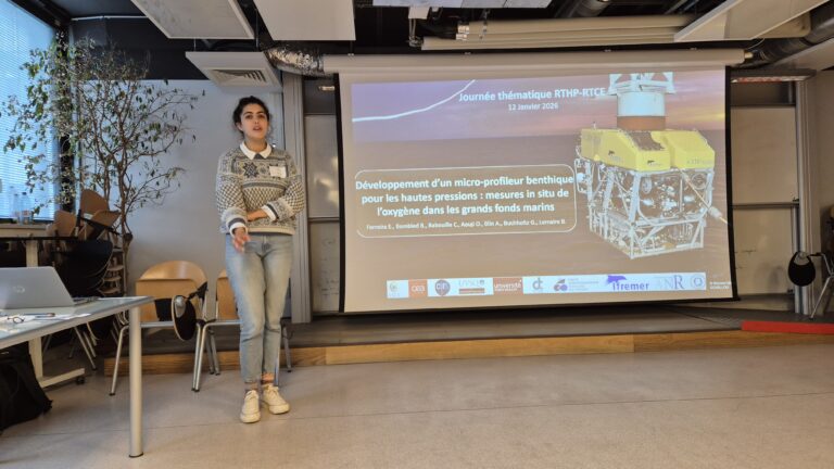 Le lundi 12 Janvier à l’IMPMC à Paris s’est déroulé la journée thématique sur les systèmes de mesures, instruments, capteurs destinés au déploiement dans des milieux contraints à pressions élevées organisée par le réseau technologique sur les capteurs en Environnement (RTCE) et réseau Technologie des hautes pressions (RTHP). Cette journée a réuni 20 chercheur·e·s, ingénieur·e·s, technicien.ne.s issu·e·s des deux réseaux pour réfléchir ensemble aux problématiques engendrées par les hautes pressions dans le développement instrumental, regroupant le savoir-faire transdisciplinaires des deux réseaux. Eva Ferreira, post doctorante de l’équipe OCEANIS a présenté le projet DeepSea’nnovation pour le développement d’un microprofiler benthique pour les hautes pressions afin d’effectuer des mesures in-situ de l’oxygène dans les grands fonds marins. Par ailleurs, Labasse Berthé de la DT-INSU de Gif-sur-Yvette, a également participé à cet événement dans le but de faire connaitre les activité de la DT-INSU et les services qu’elle propose, à travers une présentation du développement de BathyProf projet porté en collaboration avec OCEANIS. Ces présentations ont ensuite été suivi d’un temps d’échange précieux permettant d’aborder des questions spécifiques au développement, aux capteurs et tests d’étanchéité en bénéficiant de l’expertise de l’ensemble des personnes présentent lors de l’atelier et de différentes communautés scientifiques.