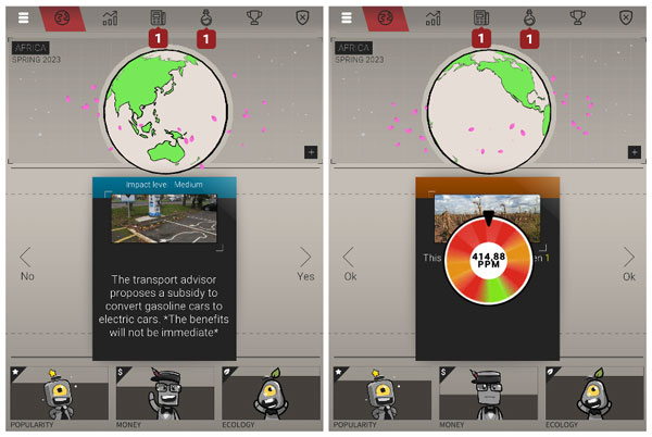 Le changement climatique est souvent présenté à travers des données, des graphiques ou des projections. Les jeux sérieux proposent une approche différente : apprendre en expérimentant des décisions dans un système complexe.ClimarisQ a été conçu dans cet esprit comme un jeu web et mobile dans lequel les joueurs doivent gérer des politiques climatiques tout en faisant face à des événements extrêmes et à des contraintes économiques et sociales.