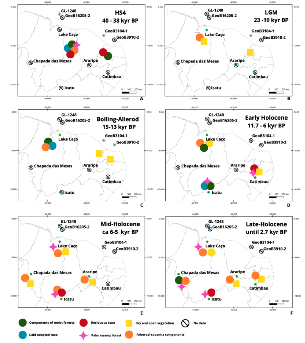 Le NEB, dominé aujourd’hui par les forêts sèches de la Caatinga et les formations du Cerrado, présente une longue histoire de transformations écologiques. Les chercheurs ont compilé 18 études couvrant la fin du dernier âge glaciaire jusqu’à l’Holocène, à partir de 6 archives marines et 8 continentales. Ces enregistrements montrent une alternance entre périodes de végétation ouverte et phases plus humides, caractérisées par une expansion des forêts mésophiles.
