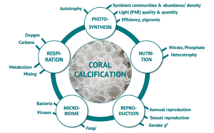 We highlight the use of elemental ratios (e.g., Mg/Ca, Sr/Ca, Li/Mg) as proxies for environmental reconstructions while addressing biases introduced by skeletal heterogeneity, bioerosion, and secondary mineral precipitation. Additionally, we discuss how physiological traits, such as symbiosis, nutrient uptake, and respiration, influence calcification and may affect the preservation of geochemical archives over time (Figure 1).