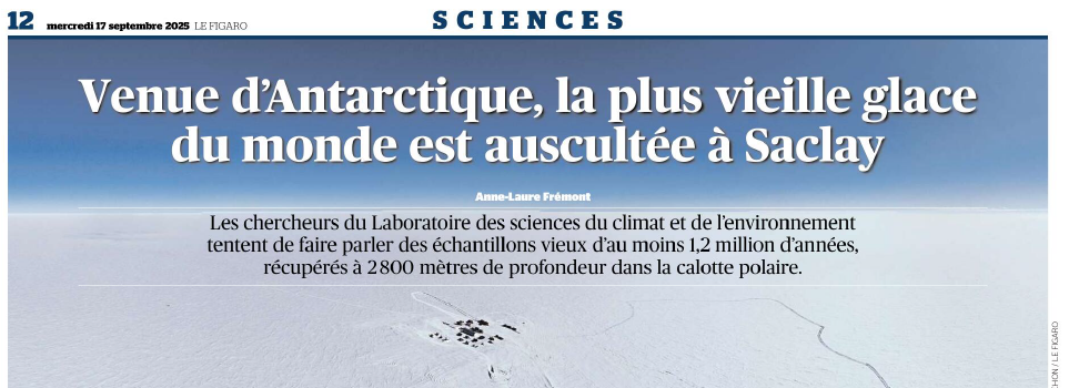 Les analyses des isotopes de l’eau et des gaz piégés dans les bulles d’air ont commencé fin Août 2025 avec déjà des premiers résultats pour dater la carotte de glace et reconstruire les variations de température en Antarctique sur la gamme de profondeur entre 2400 et 2507 m de la carotte Beyond EPICA, des niveaux de profondeur qui doivent contenir la glace vieille de 700 000 ans à 1,5 million d’années.