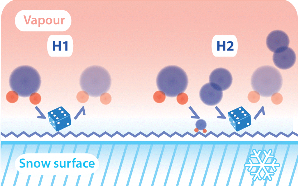 Il est donc nécessaire de mieux comprendre comment la neige se forme à la surface. Actuellement, deux hypothèses doivent être étudiées : soit chaque isotope a une probabilité différente de se condenser à la surface (H1), soit la molécule d’eau condense toujours, mais chaque isotope a une probabilité différente d’être détaché par les molécules de gaz environnantes (H2). L’objectif du stage est d’utiliser un tout nouvel appareil de spectroscopie et un dispositif bien contrôlé afin de mesurer le coefficient de fractionnement et de comprendre
