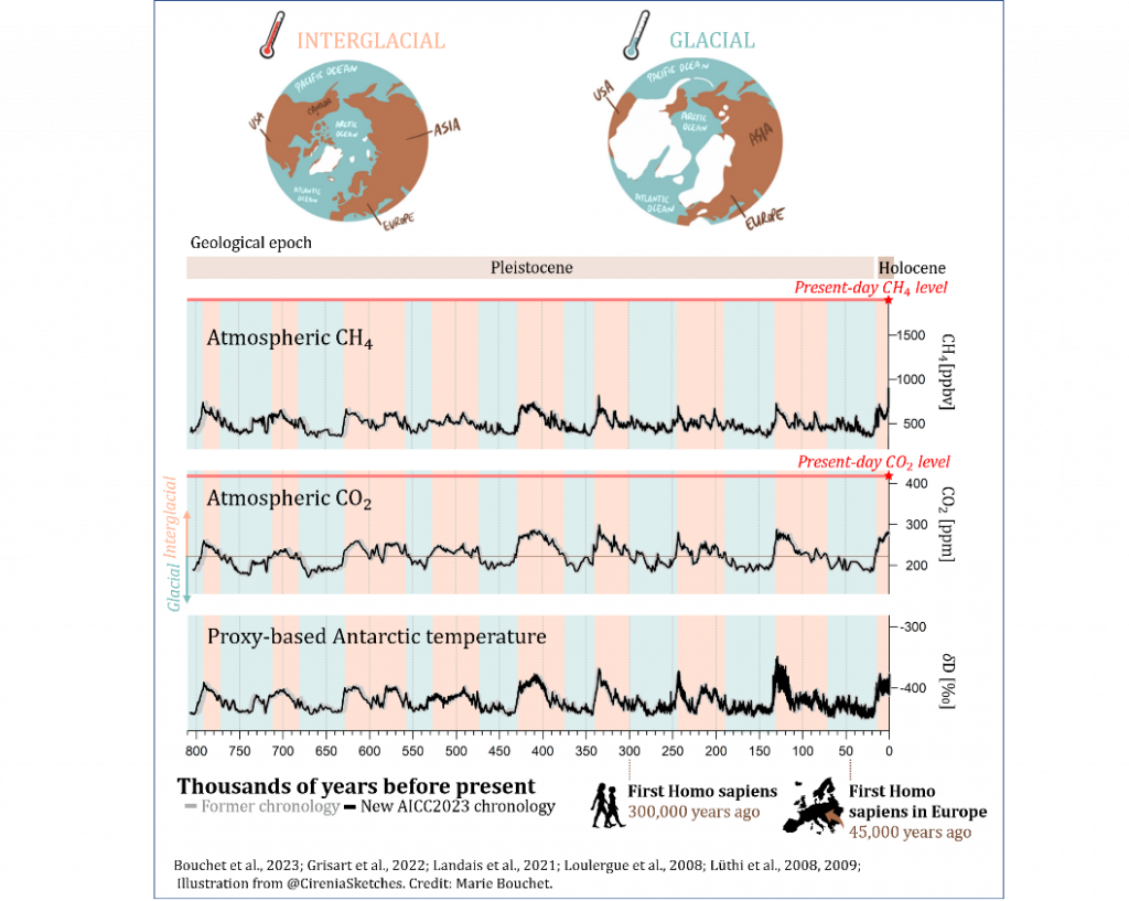 Auteurs: Marie Bouchet, Amaëlle Landais, Antoine Grisart, Frédéric Parrenin, Frédéric Prié, Roxanne Jacob, Elise Fourré, Emilie Capron, Dominique Raynaud, Vladimir Ya Lipenkov, Marie-France Loutre, Thomas Extier, Anders Svensson, Etienne Legrain, Patricia Martinerie, Markus Leuenberger, Wei Jiang, Florian Ritterbusch, Zheng-Tian Lu, Guo-Min Yang.