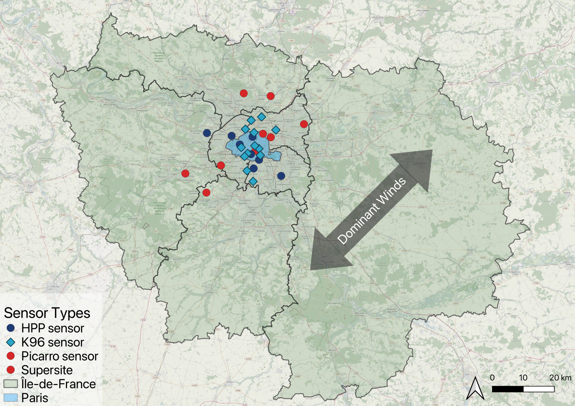 Accompagner les politiques publiques vers des actions climatiques ciblées Le réseau urbain de capteurs de CO2 a été installé et exploité par le LSCE (CEA-CNRS-UVSQ) entre 2022 et 2025 dans le cadre du projet ICOS Cities, pionnier dans l’observation des émissions de GES en zones urbaines. En combinant ces nouvelles données d’observation en temps réel avec les inventaires, les collectivités territoriales obtiennent une image complète et précise des émissions urbaines, offrant une base fiable pour la conception de mesures climatiques ciblées.